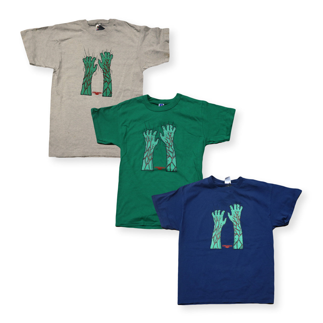 Vintage zombie hands transfer heat pressed onto a vintage large Fruit of the Loom 98% cotton tee