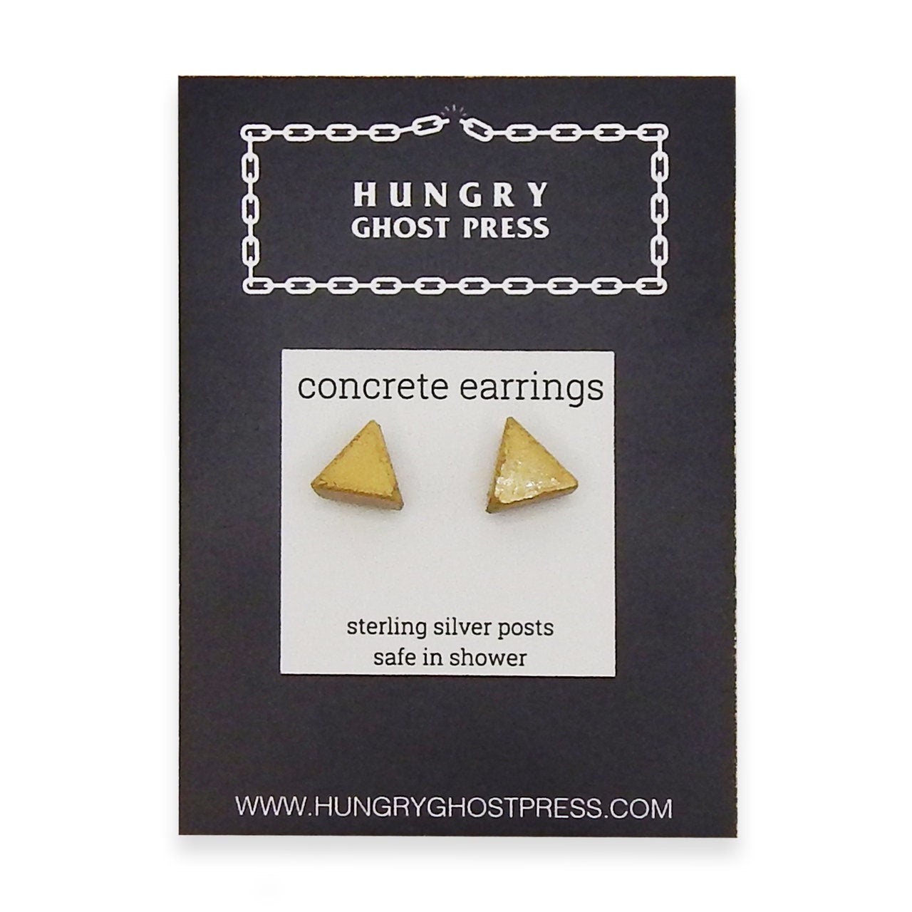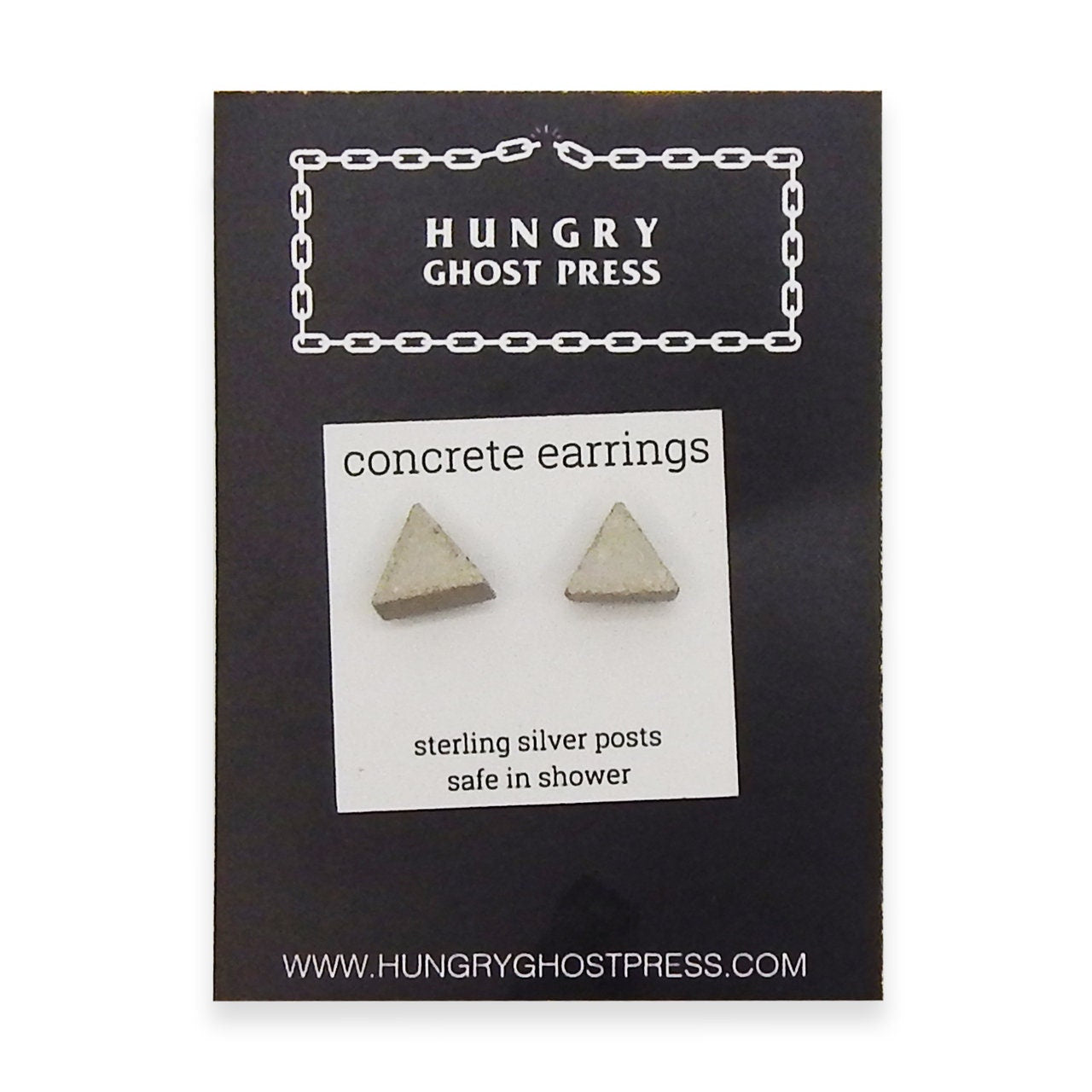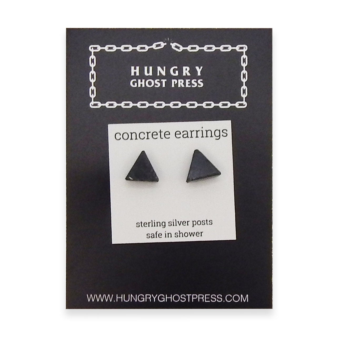 Each pair of stud earrings features small cast concrete triangles on sterling silver posts with backing.