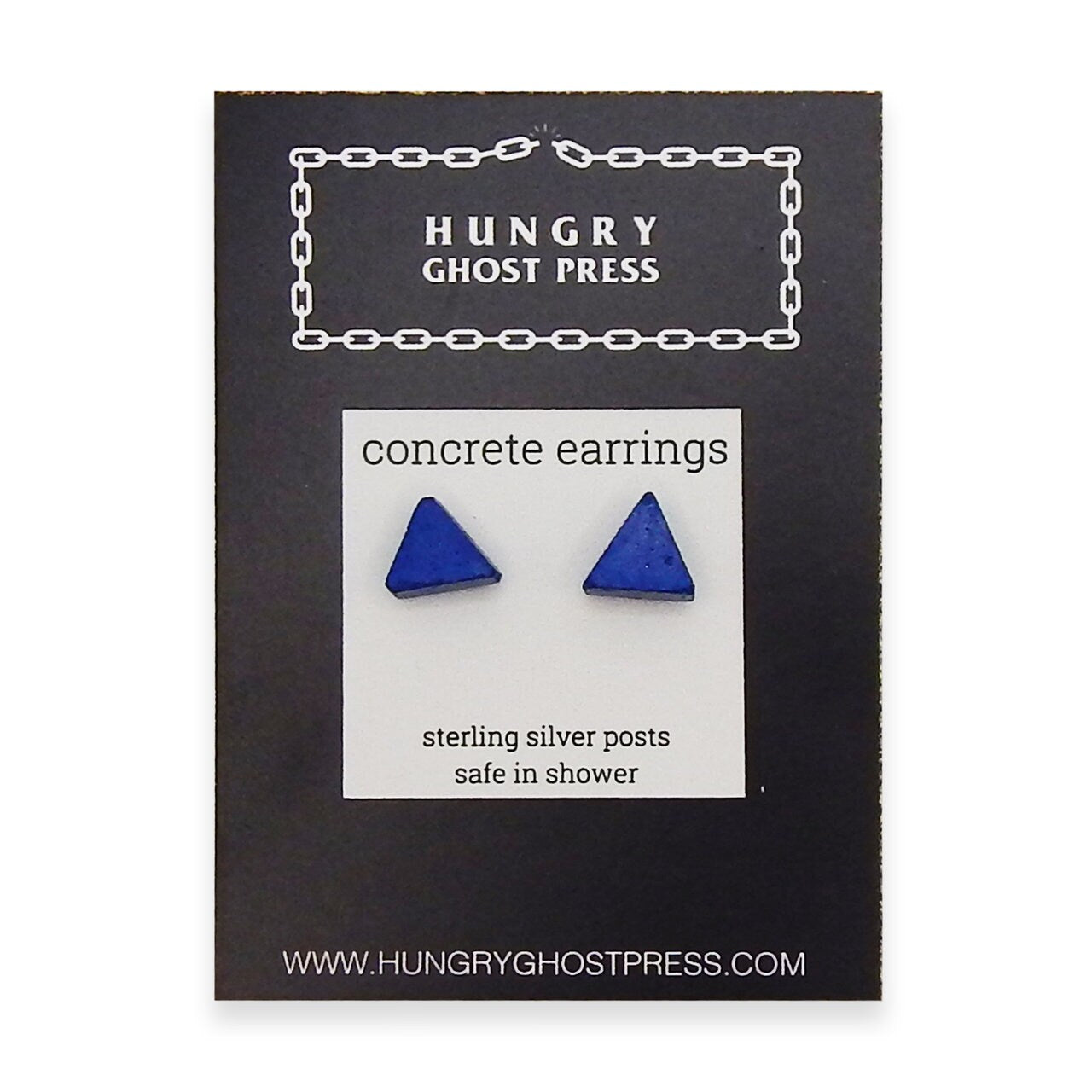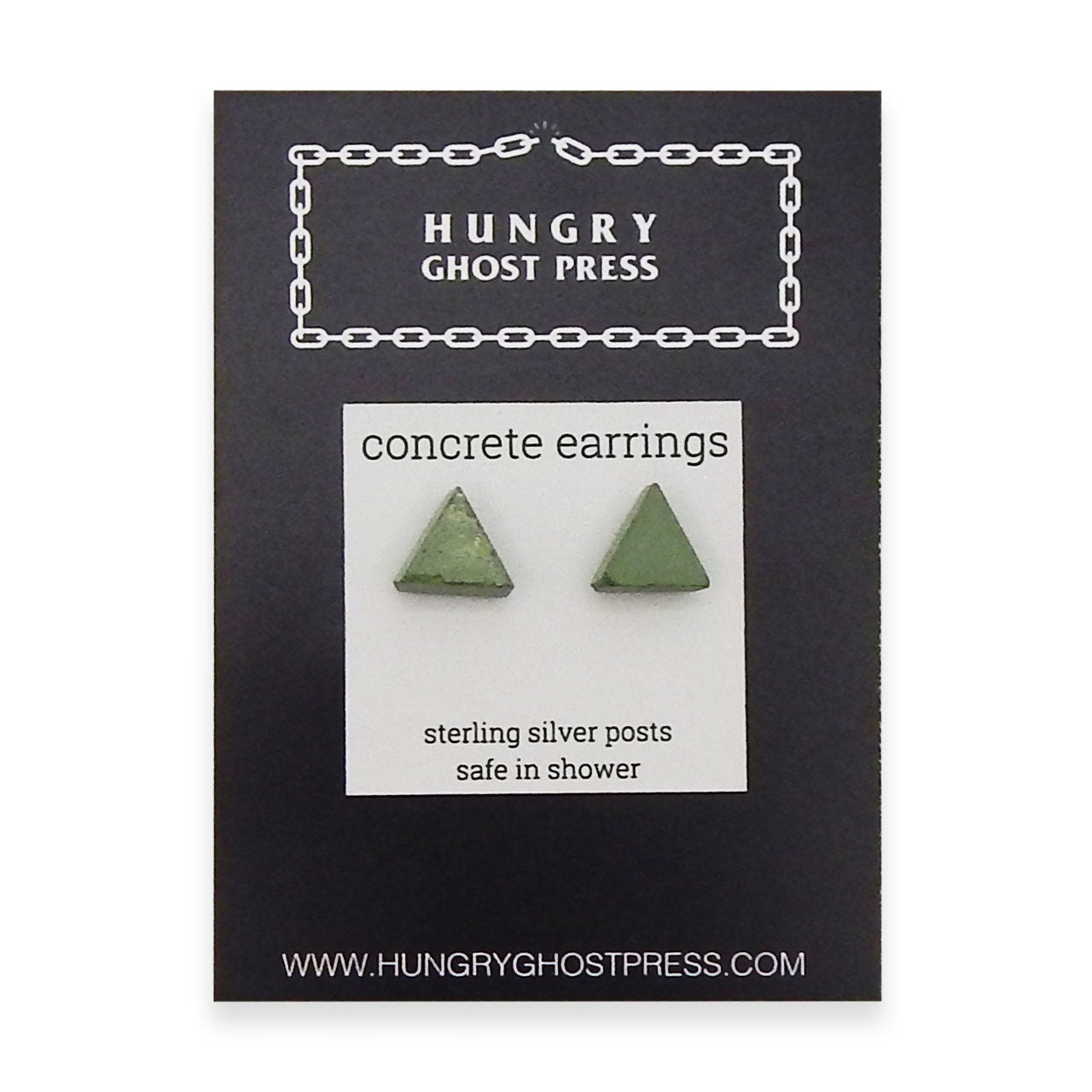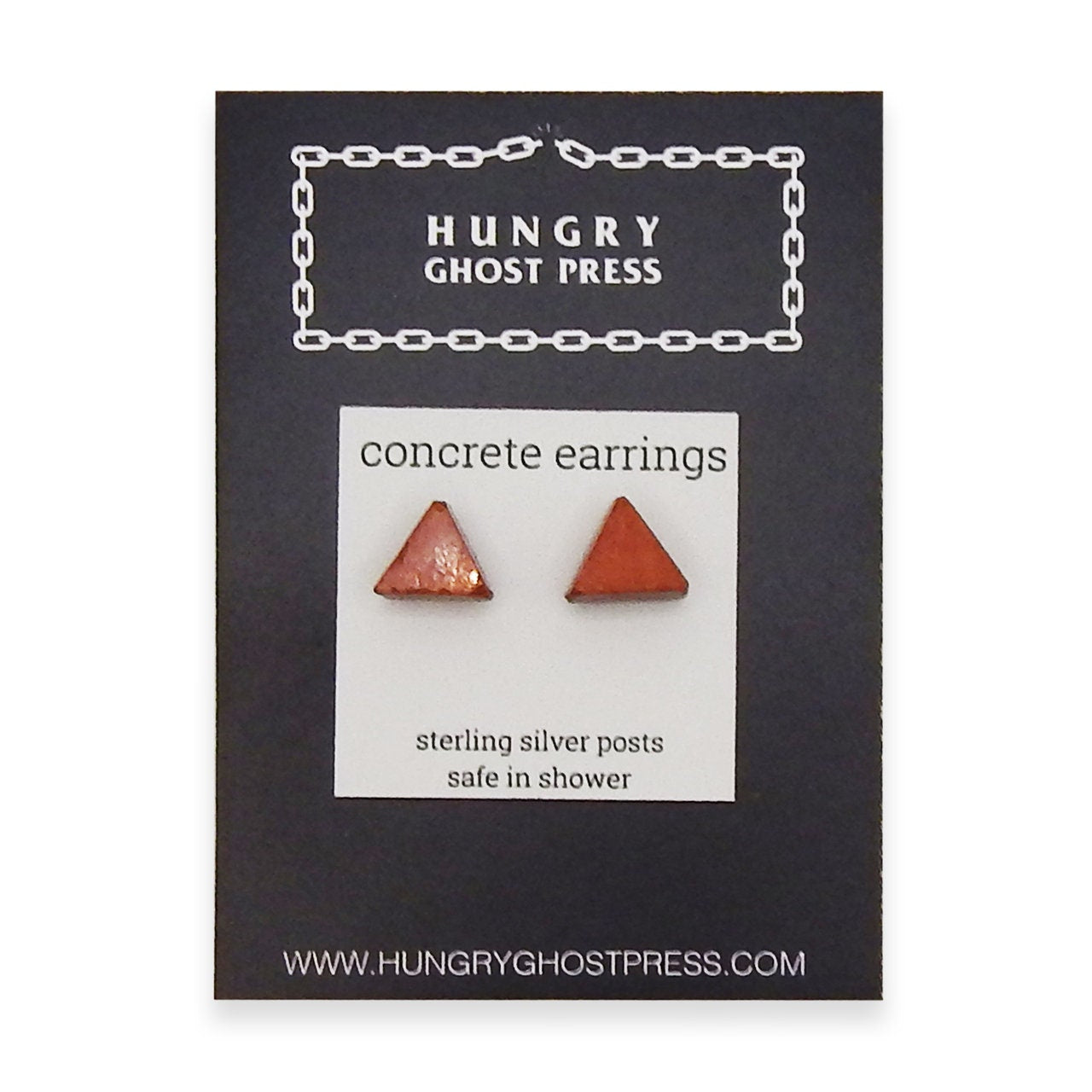 Each pair of stud earrings features small cast concrete triangles on sterling silver posts with backing.