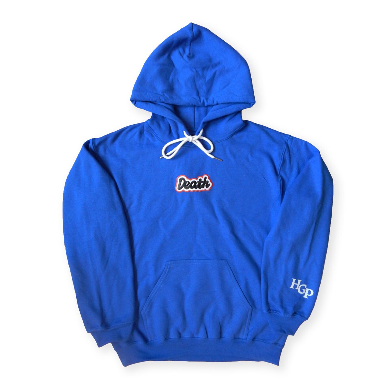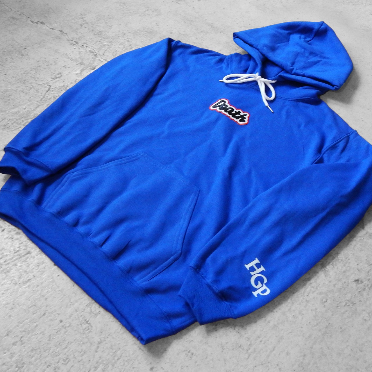 Our midweight hoodie features an embroidered patch applied to center front and contrast drawstrings