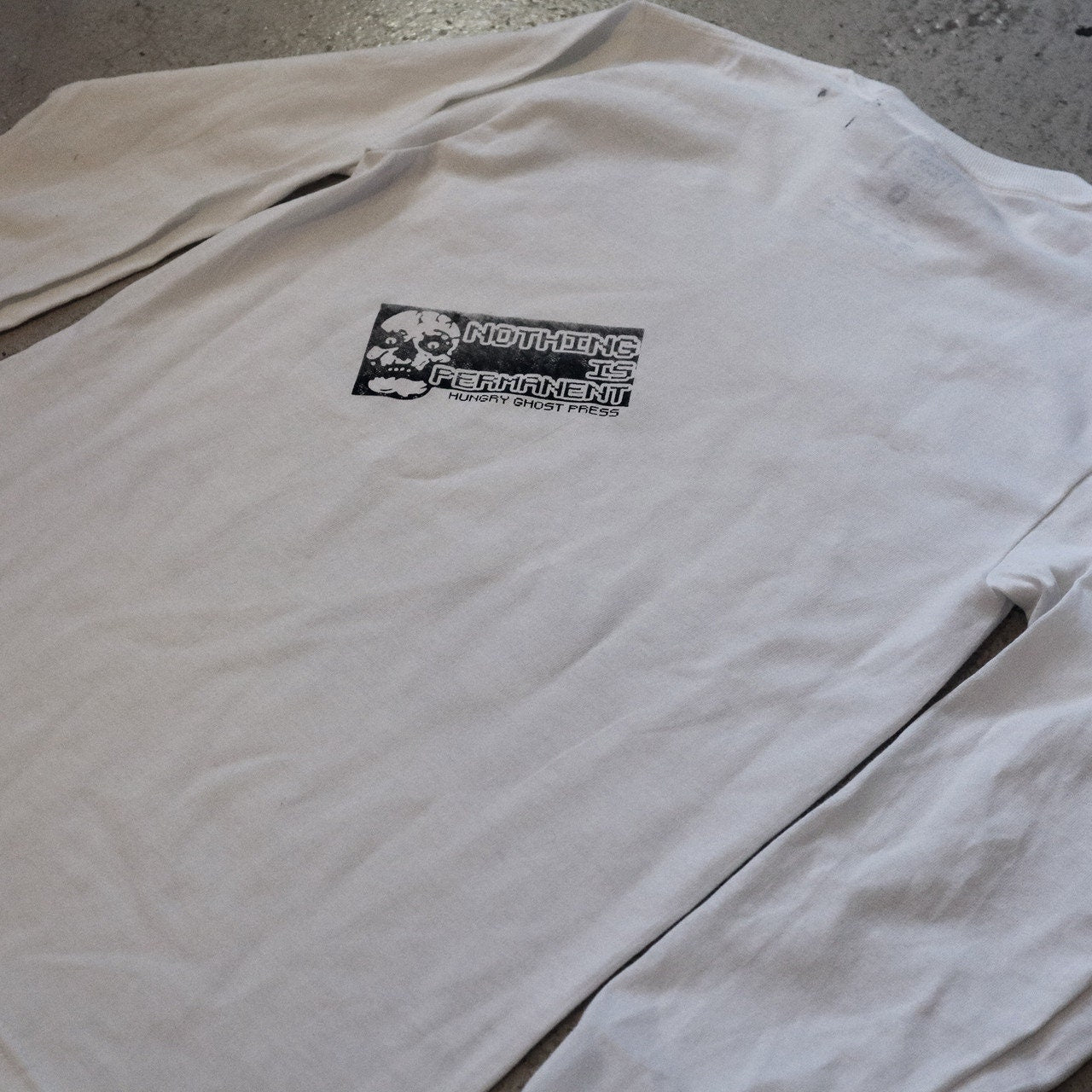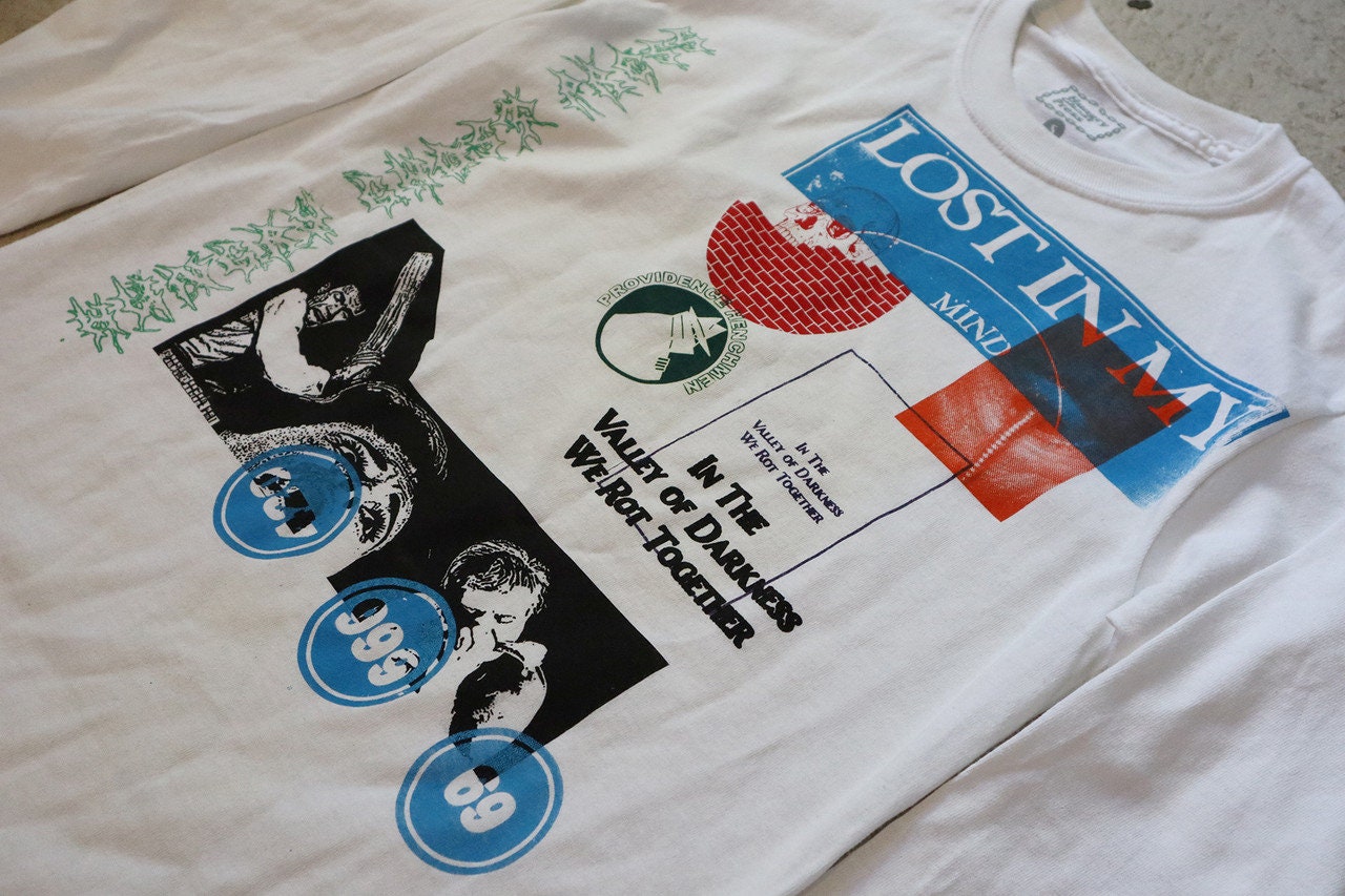 Prints from after printing. Limited edition shirts with randomly chosen design, ink color, and placement. Each shirt varies slightly.