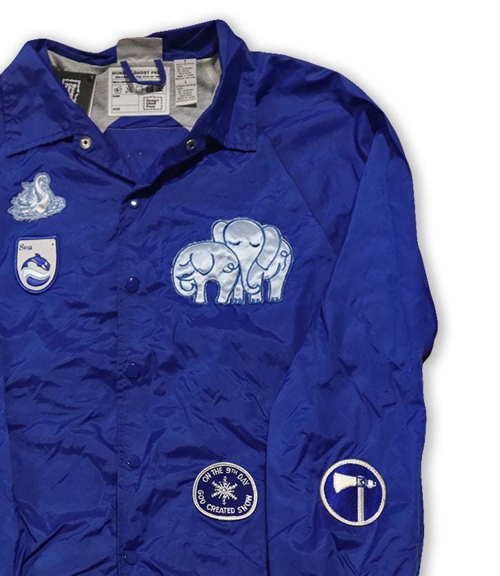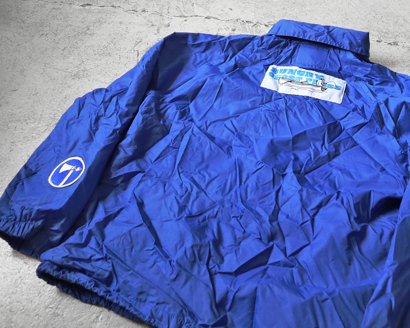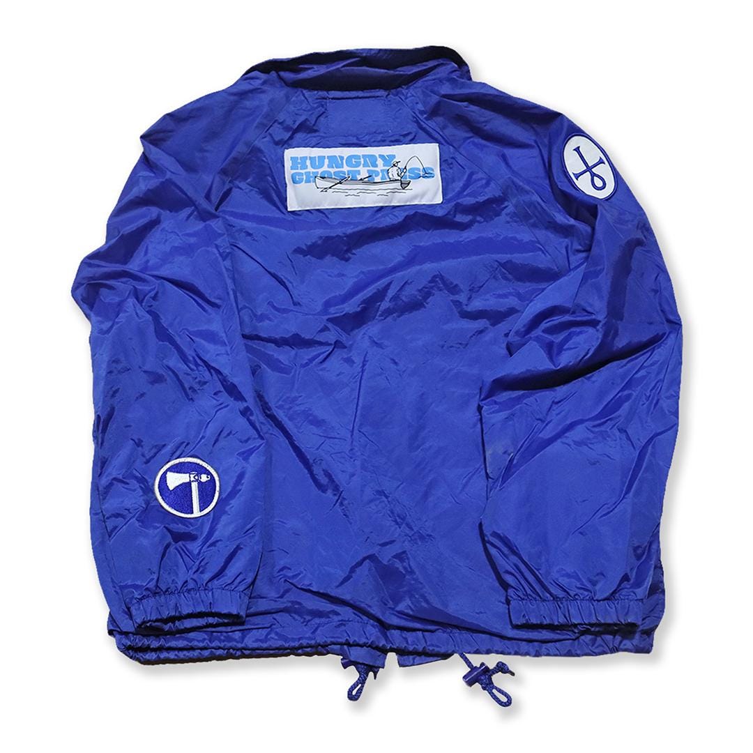 Vintage and Hungry Ghost Press original patches on an Athletech windbreaker