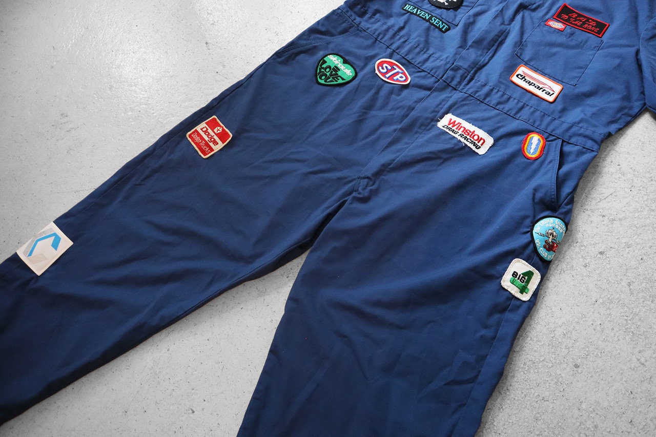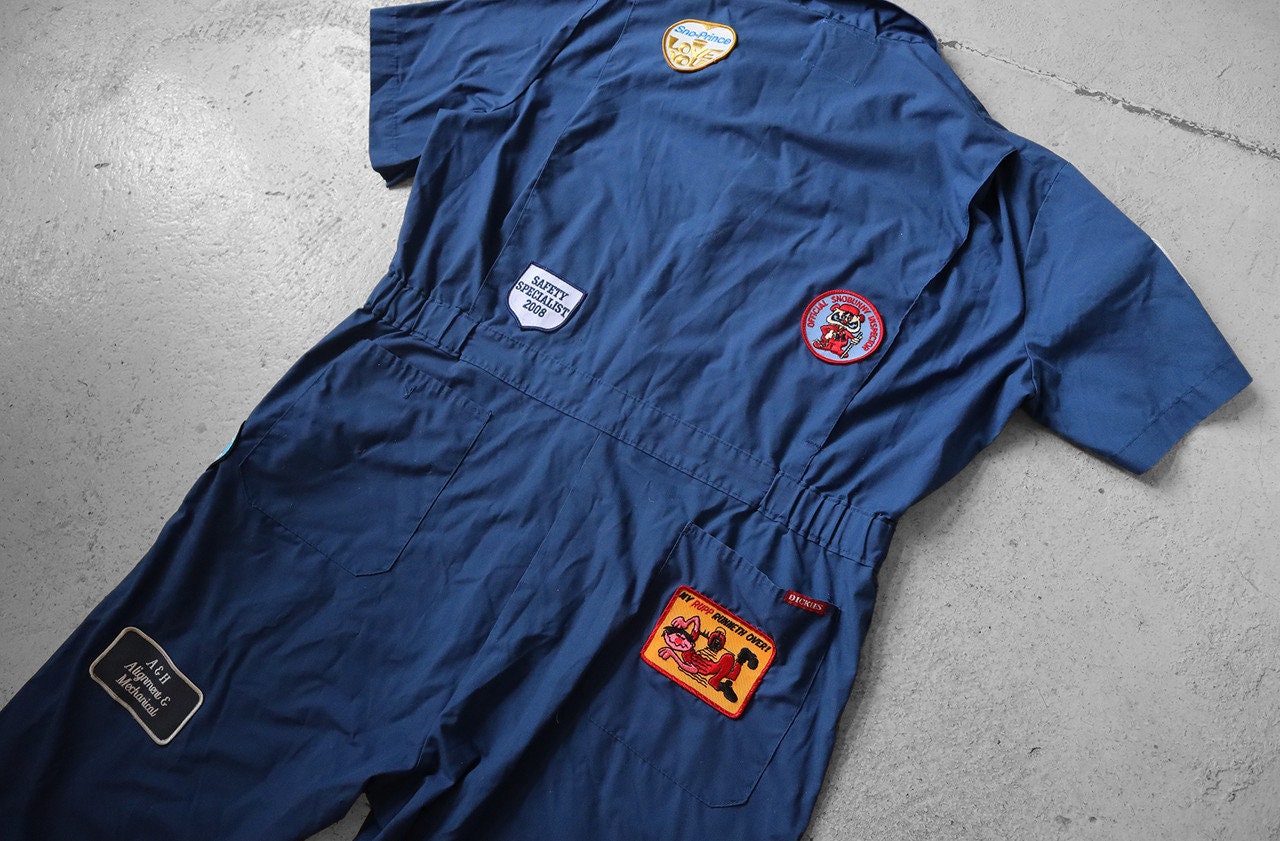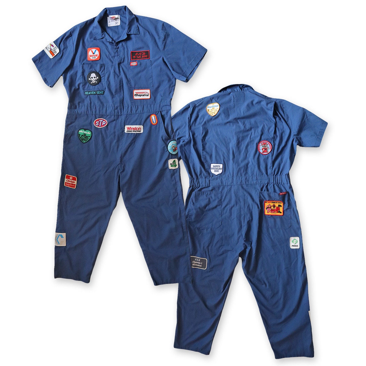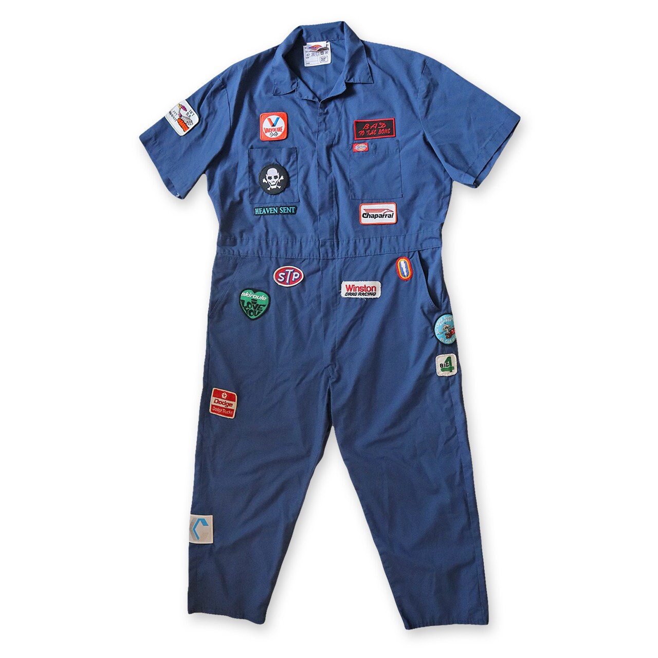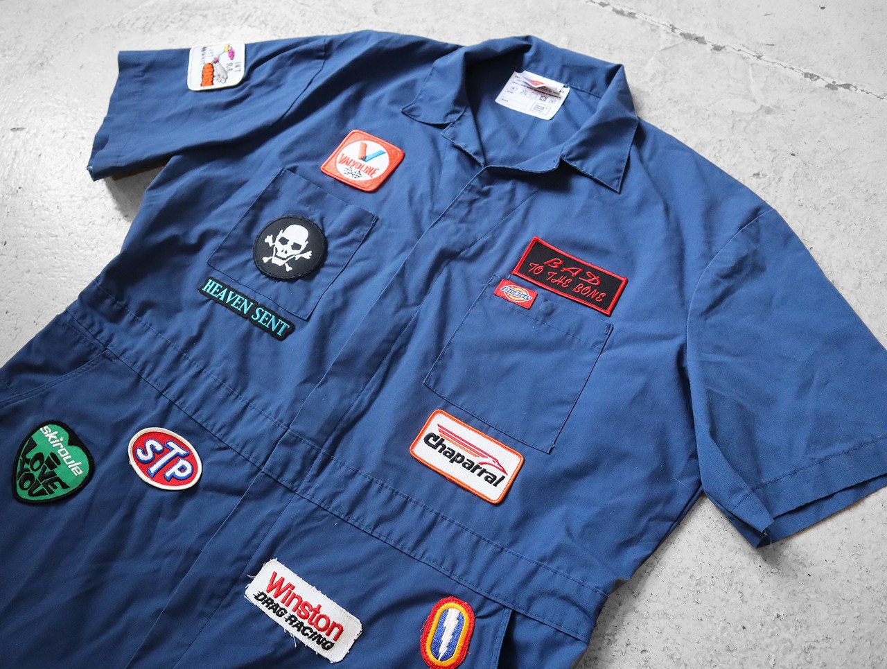 A one of one unique piece. Vintage patches heat pressed onto vintage Dickies coveralls.Pit to pit: 27"