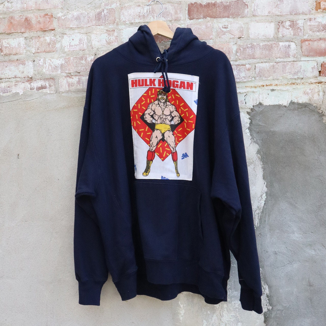 Blue Champion Sweatshirt Hand Sewn Hulk on Canvas