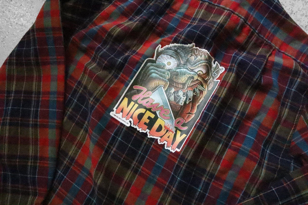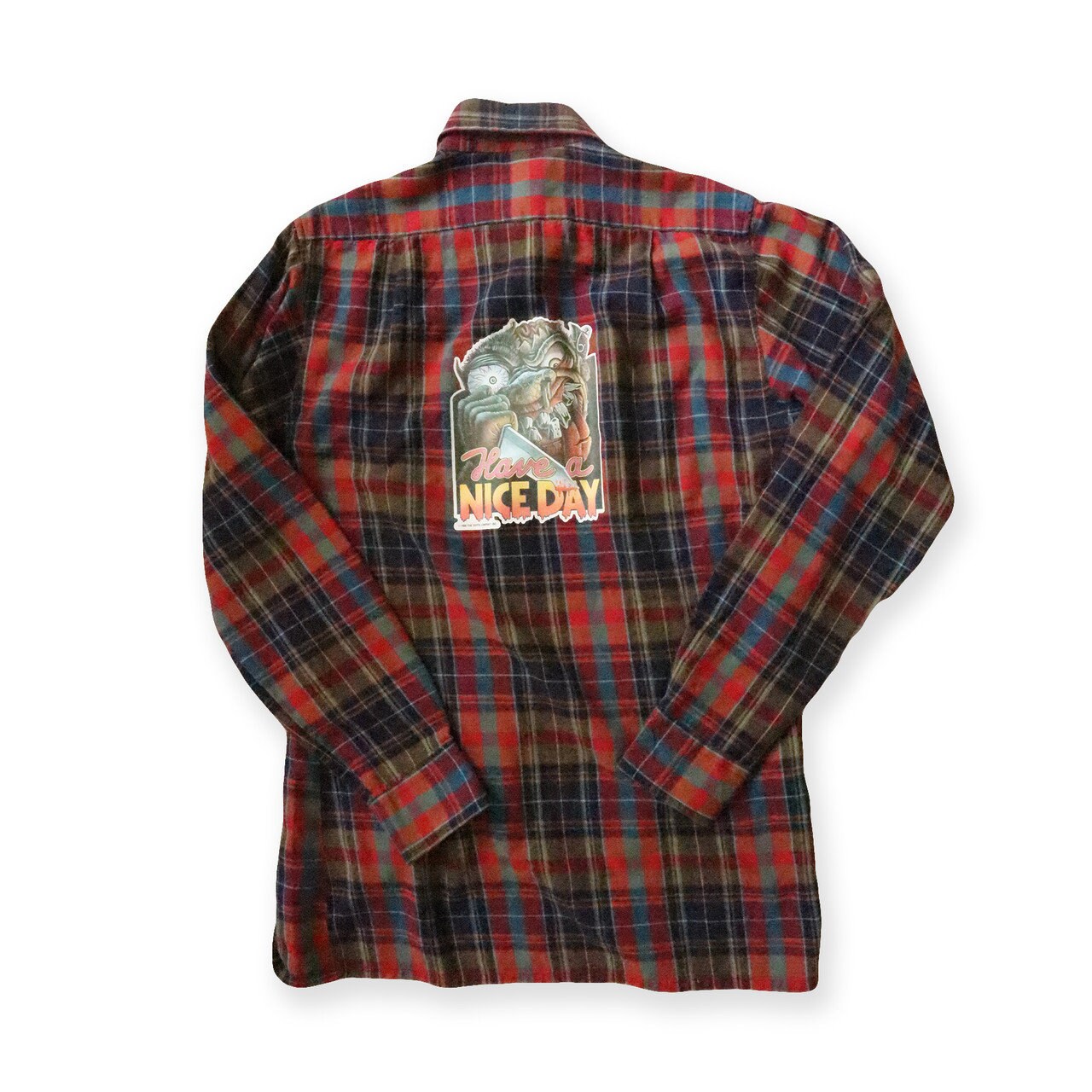 A one of one unique piece. A vintage transfer heat pressed onto the back of a vintage Bert Pulitzer flannel with a vintage patch one the front left chest.Pit to Pit: 19.5"