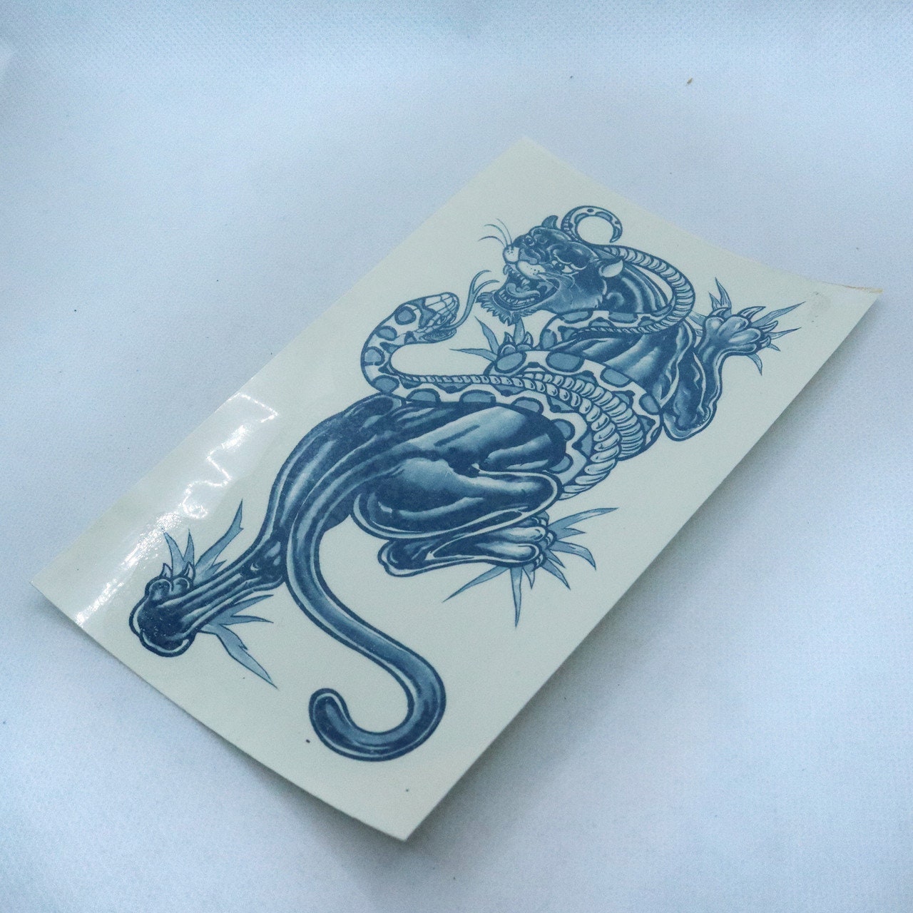 Vintage large VERY BADASS temporary tattoo of a panther fighting a python.