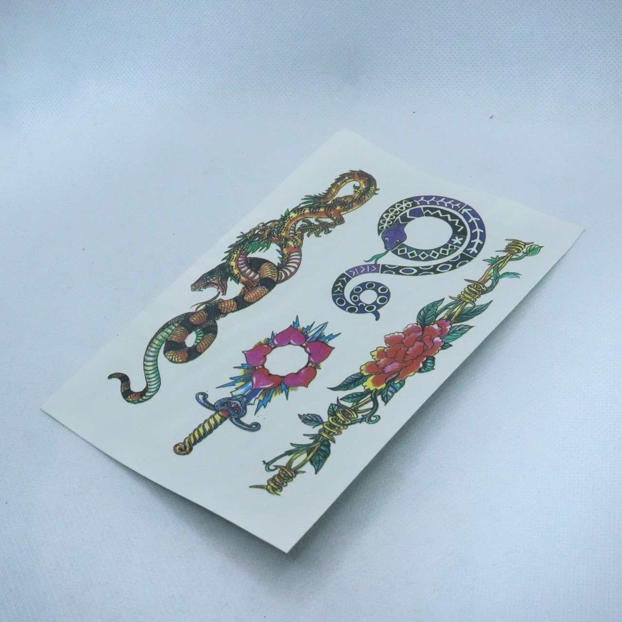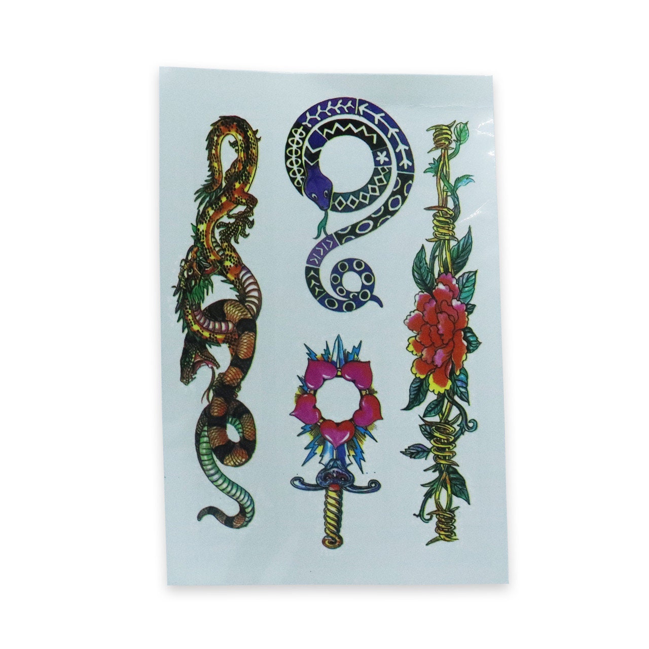 Vintage Snakes and Roses Temporary Tattoo Sheet