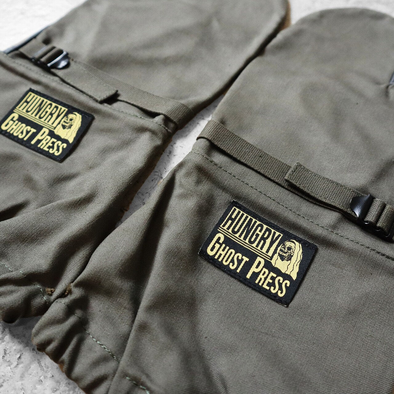 · Separate index and thumb for easing gripping· Tension cord closure to keep out the cold and snow· Vintage utility gloves with new HGPress woven labels· Limited quantity· One size fits most