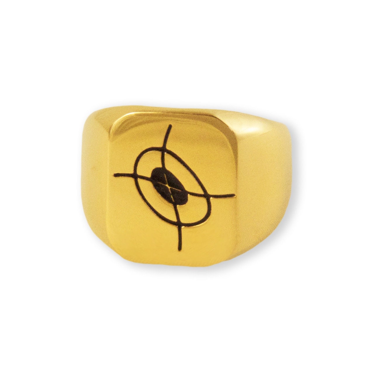 Black engraved crosshairs logo on top