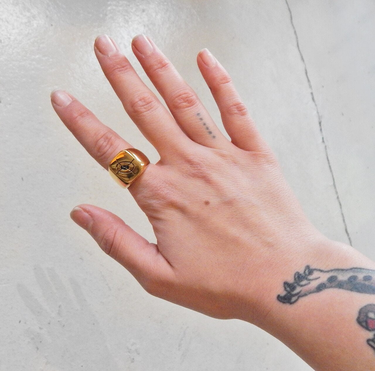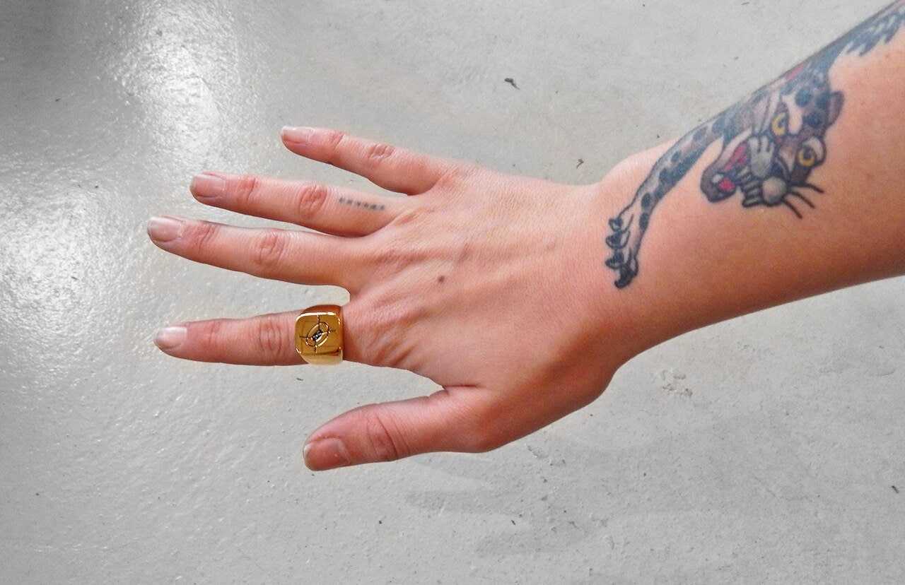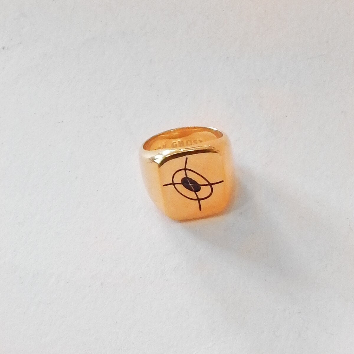 White etched Hungry Ghost Press on ring interior